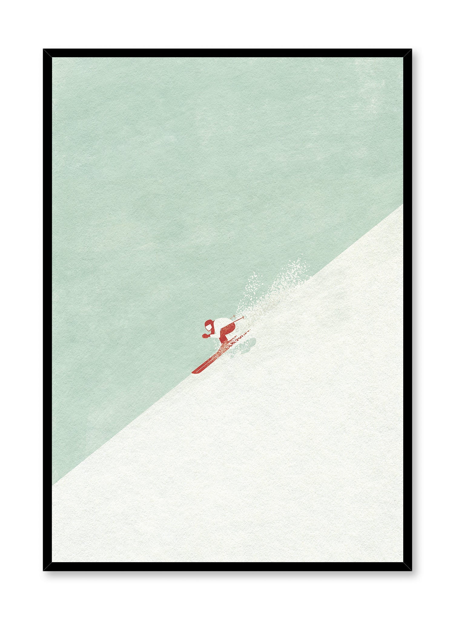 If diving down snowy hills is your thing, you'll appreciate 'Slope of Life'. This ski-themed painting shows a skier dressed in red and white sliding down a steep mountain under a blue sky.